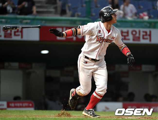 2회말 2사에서 SK 박정권이 좌월 솔로 홈런을 치고 있다.
