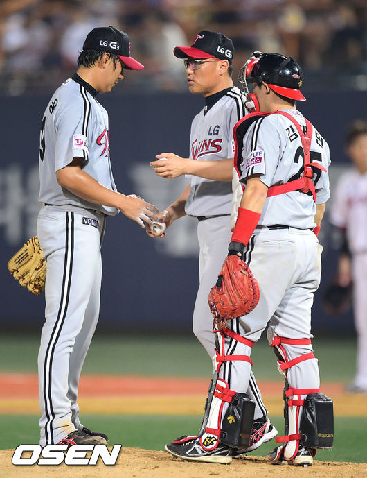 20일 오후 서울 목동구장에서 열린 2014 한국야쿠르트 세븐 프로야구 넥센 히어로즈와 LG 트윈스의 경기, 3회말 3실점 허용한 LG 선발투수 장진용이 강판되고 있다.