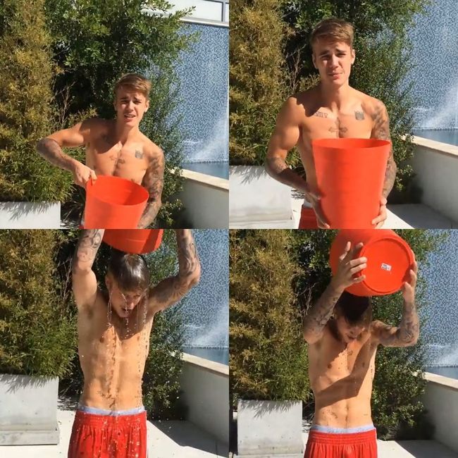 유명 팝가수 저스틴 비버가 상의를 탈의한 채 아이스버킷챌린지에 동참해 화제다.