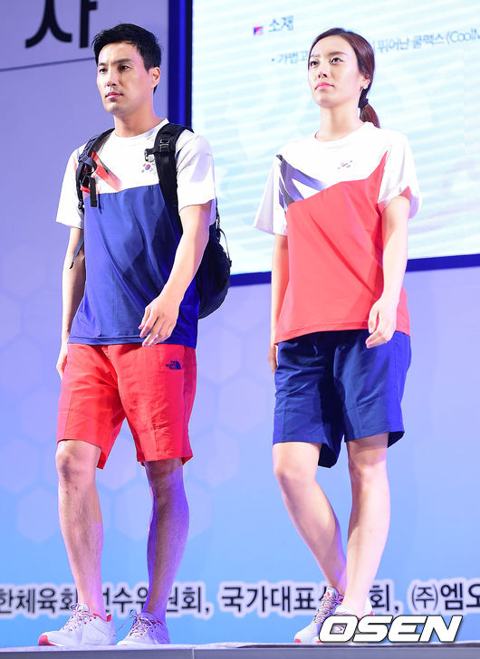 모델들이 인천아시안게임 공식 일상복을 입고 워킹을 선보이고 있다.