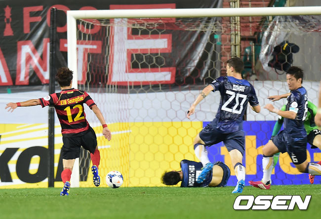 20일 오후 포항 스틸야드에서 열린 2014 ACL 8강 1차전 포항 스틸러스와 FC 서울의 경기, 전반 포항 김승대가 슛을 시도하고 있다.