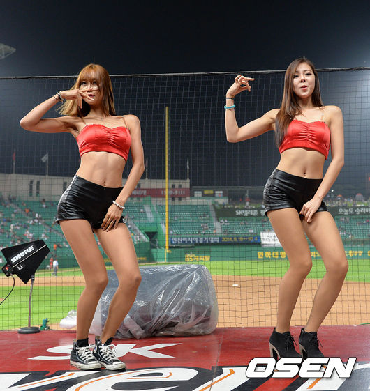 SK 치어리더가 화려한 공연을 펼치고 있다.