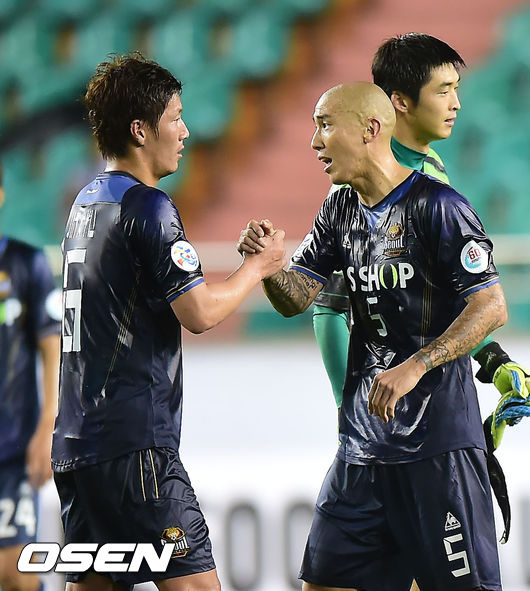 경기를 마치고 서울 김진규와 차두리가 하이파이브를 하고 있다. /rumi@osen.co.kr