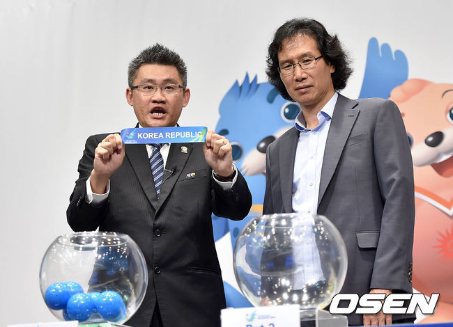 1986 서울 아시안게임 이후 금메달에 도전하는 축구 대표팀 조추첨에는 최순호 씨가 참석했다. 한국은 개최국으로 시드배정을 받았다. 카타르가 출전을 포기한 가운데 29개국이 예선에 참가한 남자 축구는 5개조가 4팀, 3개조가 3팀으로 구성됐다.