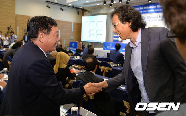 한편 이날 행사장에는 축구, 농구, 배구, 핸드볼(이상 스타스포츠)과 럭비(한스스포츠) 등 5개 종목의 공식구도 전시, 소개되며 기술대표(TD) 합동회의도 개최됐다. /sunday@osen.co.kr