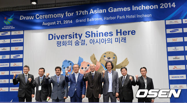 2014인천아시아경기대회 조직위원회(위원장 김영수)는 21일 인천시 중구 하버파크호텔 2층 그랜드볼룸에서 8개 단체·구기 종목(축구, 농구, 배구, 핸드볼, 럭비, 세팍타크로, 수구, 카바디)과 배드민턴, 체조 등 10개 종목의 조 추첨 행사를 열었다.