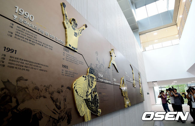 사진은 미래관 로비에 전시되어 있는 LG 트윈스 주요 연혁의 모습.