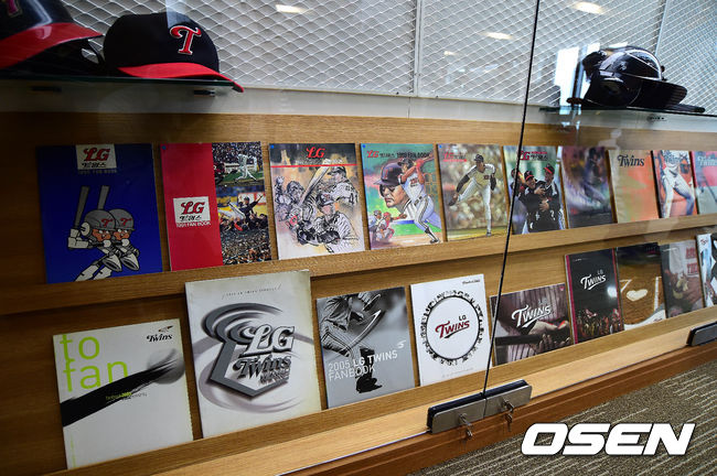 사진은 LG 트윈스 사료실에 전시된 역대 팬북의 모습.