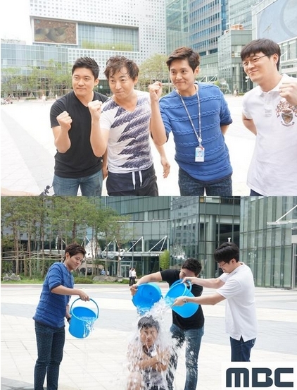 공개된 사진 속에는 파란색 버킷으로 시원하게 얼음 샤워를 하고 있는 MBC 아나운서들의 모습이 담겨 있다. 앞서 이성배 아나운서는 그룹 울랄라세션에게 지목됐다.
