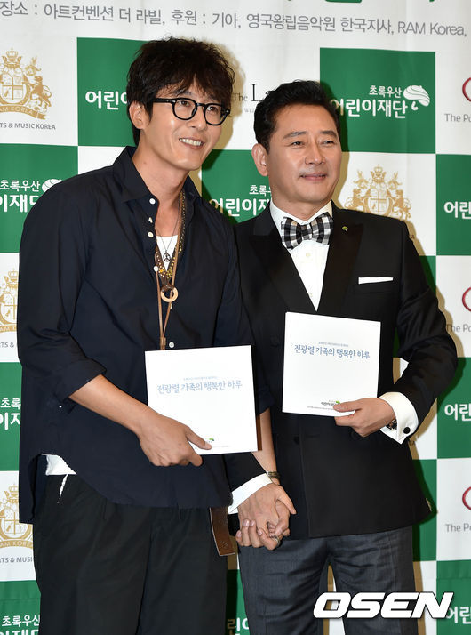 배우 김주혁과 전광렬이 포토타임을 갖고 있다.