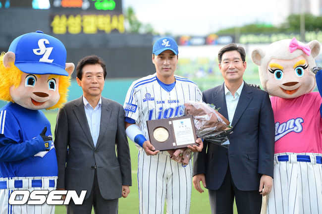 21일 오후 대구 시민구장에서 삼성 라이온즈와 두산 베어스의 경기가 열릴 예정인 가운데 삼성 이승엽이 검찰청 홍보대사에 위촉되고 있다.
