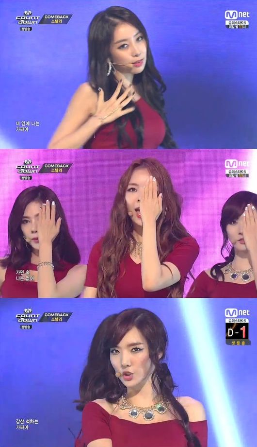 이날 스텔라는 붉은색의 의상을 입고 무대에 등장했다. 섹시함이 돋보이는 의상과 안무로 눈길을 끌었다. 멤버들의 가녀린 목소리가 곡과 어우러져 귀를 사로잡았다.