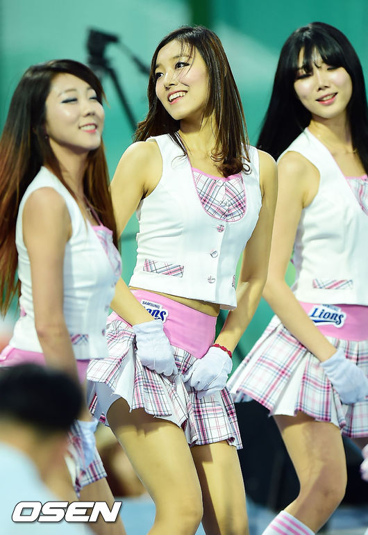 21일 오후 대구 시민구장에서 열린 삼성 라이온즈와 두산 베어스의 경기, 삼성 치어리더 이수진이 화려한 공연을 펼치고 있다.