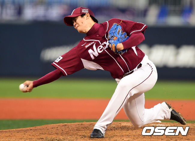 21일 오후 경남 창원 마산구장에서 열린 '2014 한국야쿠르트 세븐 프로야구' NC 다이노스와 넥센 히어로즈의 경기 2회말 넥센 선발 김대우가 역투하고 있다.