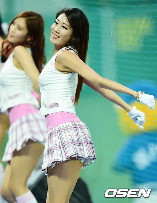 21일 오후 대구 시민구장에서 열린 삼성 라이온즈와 두산 베어스의 경기, 삼성 치어리더 이연주가 화려한 공연을 펼치고 있다.