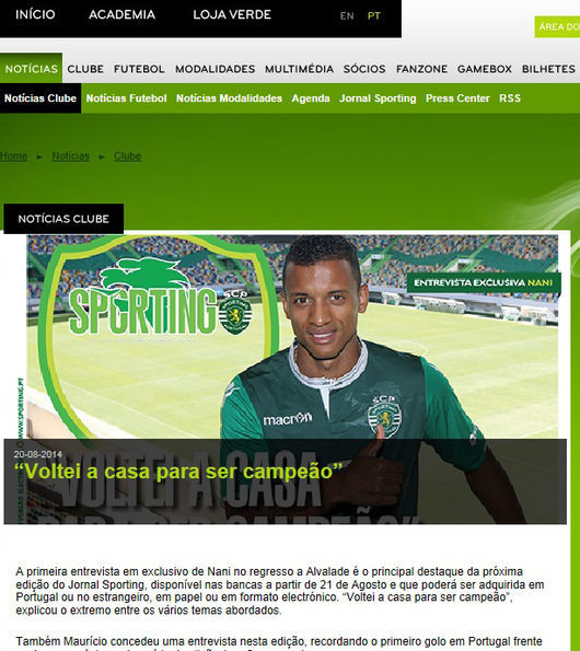2005년 스포르팅 리스본에서 프로에 데뷔한 나니는 2007년 맨유로 이적해 7년 간 활약했다. 하지만 나니는 최근 부상 등으로 맨유에서 입지가 좁아지면서 설 자리를 잃게 됐다. 7년 만에 친정팀으로 돌아간 나니는 제2의 축구인생을 열게 됐다.