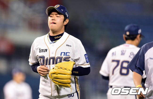 21일 오후 경남 창원 마산구장에서 열린 '2014 한국야쿠르트 세븐 프로야구' NC 다이노스와 넥센 히어로즈의 경기 6회초 1사 만루 손정욱이 마운드를 내려오고 있다.