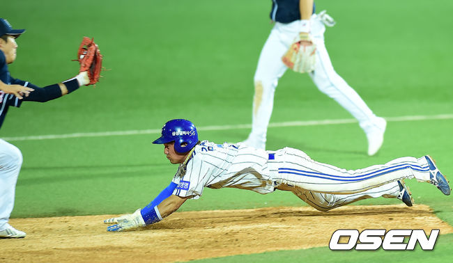 21일 오후 대구 시민구장에서 열린 삼성 라이온즈와 두산 베어스의 경기, 7회말 무사 주자 1루 삼성 나바로 타석에서 1루 주자 김상수가 2루 도루에 성공하고 있다.