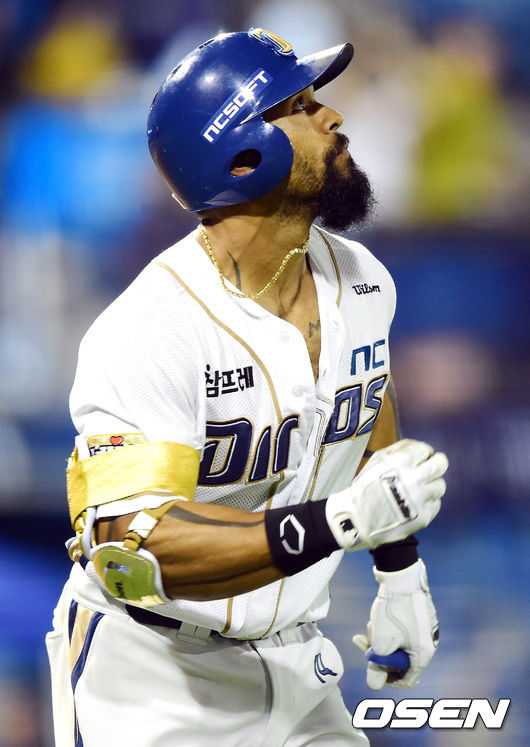 21일 오후 경남 창원 마산구장에서 열린 '2014 한국야쿠르트 세븐 프로야구' NC 다이노스와 넥센 히어로즈의 경기 7회말 2사 2루 테임즈가 투런포를 치고 달리고 있다.