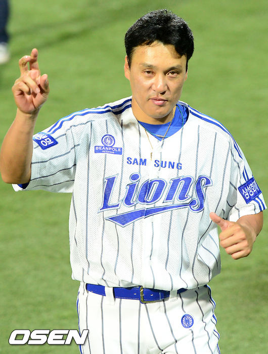 경기를 마치고 삼성 이승엽이 카메라를 보며 브이사인을 보이고 있다. / rumi@osen.co.kr