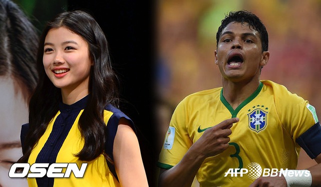 아이스버킷챌린지에 동참한 배우 김유정이 자신과 닮았다는 평가를 들은 브라질 축구선수 티아고 실바(30, PSG)를 다음 참가자로 지목해 화제다.