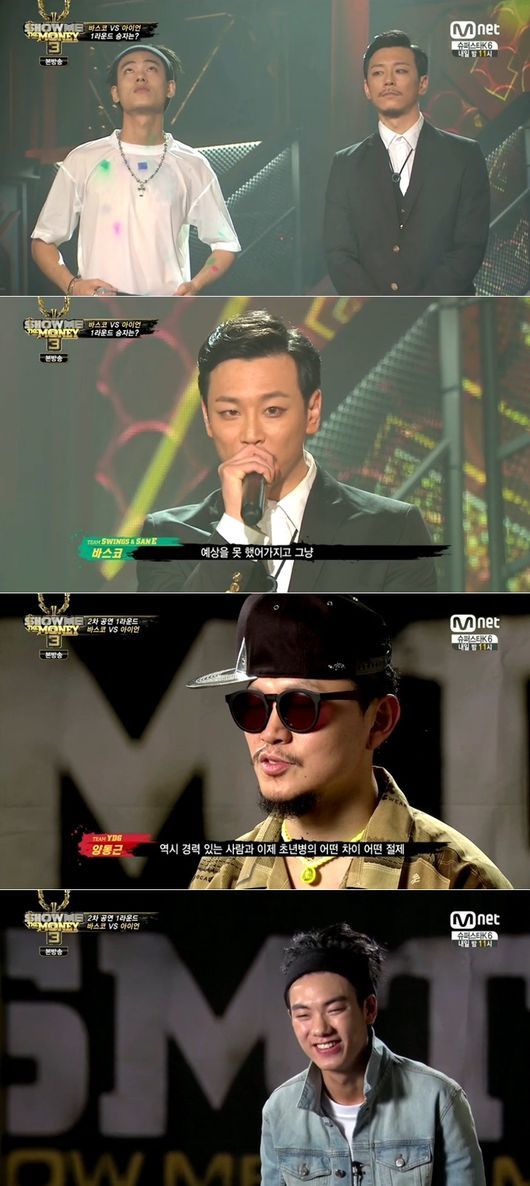 21일 오후 방송된 엠넷 서바이벌 프로그램 ‘쇼미더머니3’에는 2차 공연 스윙스-산이 팀의 바스코와 YDG 팀의 아이언의 대결이 펼쳐졌다.