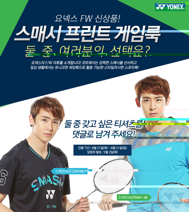 요넥스 F/W 신상품, 스매시 프린트 게임룩 두 가지 중 갖고 싶은 티셔츠 댓글 달기