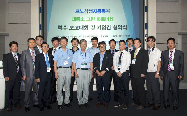 르노삼성자동차는 효율적 산업 환경 관리를 위한 대·중소기업간 친환경 공급망 체계 구축 사업인 '2014 대·중소 그린 파트너쉽' 사업의 협약식을 22일 르노삼성자동차 부산 공장 자동차 문화관에서 개최했다.