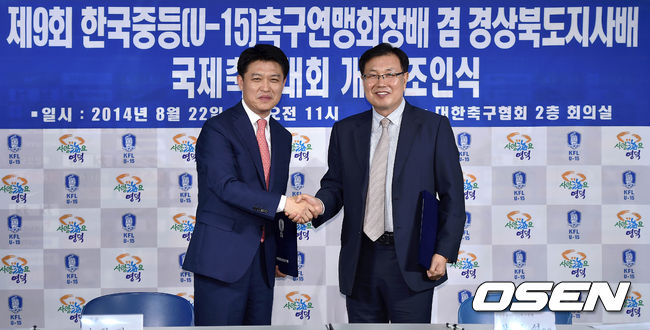 22일 오전 서울 신문로 축구회관에서 '제9회 한국중등(U-15) 축구연맹회장배 겸 경상북도지사배 국제축구대회 개최 조인식'이 열렸다.