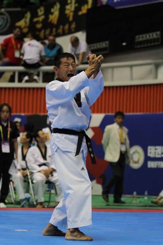 태권도 최고의 경지 9단인 이 사범은 22일 포항체육관에서 열린 ‘2014 세계태권도한마당(이하 한마당)’ 국내 공인품새 남자 마스터 Ⅱ(60세 이상) 부문에 참가, 평점 7.35점을 받아 우승을 차지했다. 2012년, 20년 만에 한마당에 참가, 우승을 차지하며 세인들의 이목을 집중시켰던 이 사범은 2013년과 올해 한마당에서도 정상에 오르는 기염을 토했다.