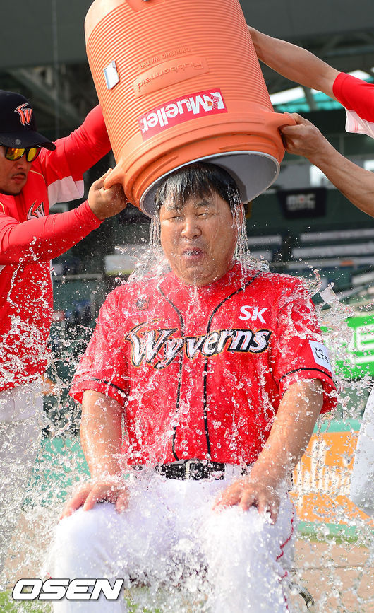 SK 이만수 감독이 아이스버킷챌린지를 진행하고 있다.