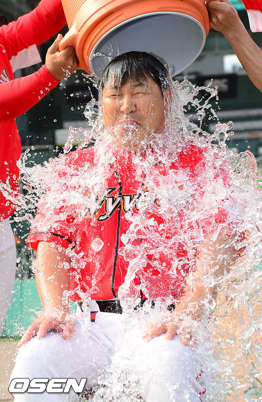 SK 이만수 감독이 아이스버킷챌린지를 하고 있다.