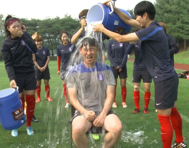 이광종 인천아시안게임 남자 축구대표팀 감독과 윤덕여 여자 축구대표팀 감독이 아이스버킷챌린지에 동참했다.