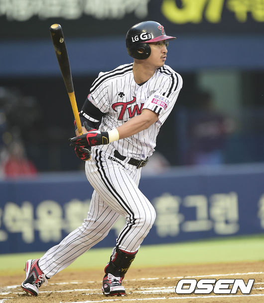 22일 오후 서울 잠실야구장에서 열린 '2014 한국야쿠르트 세븐 프로야구' LG트윈스와 KIA 타이거즈의 경기, 1회초 1사 주자 1루 LG 박용택이 역대 22번째 2500루타를 치고 있다.