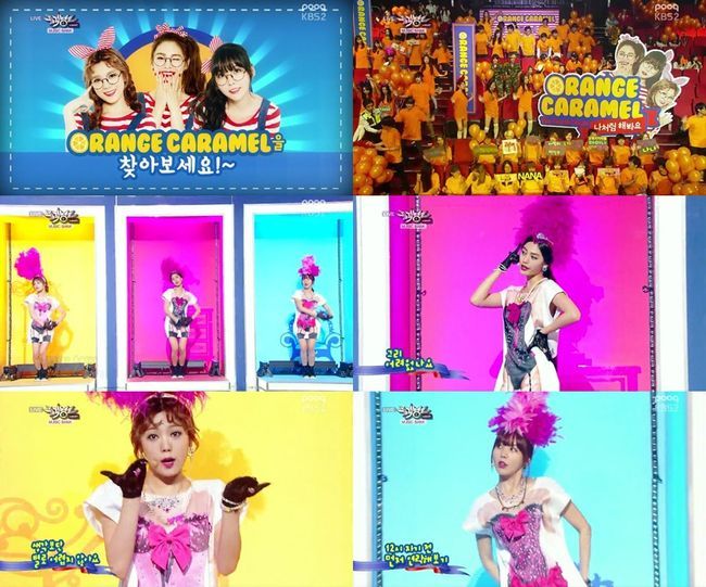 오렌지캬라멜은 22일 오후 방송된 KBS 2TV '뮤직뱅크'에서 신곡 '나처럼 해봐요'를 열창하며 화려한 컴백을 알렸다.