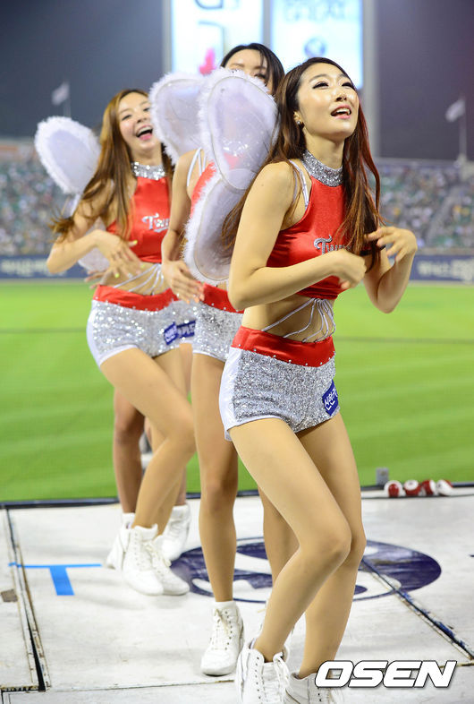 22일 오후 서울 잠실야구장에서 열린 '2014 한국야쿠르트 세븐 프로야구' LG트윈스와 KIA 타이거즈의 경기, LG 치어리더들이 멋진 공연을 선사하고 있다.