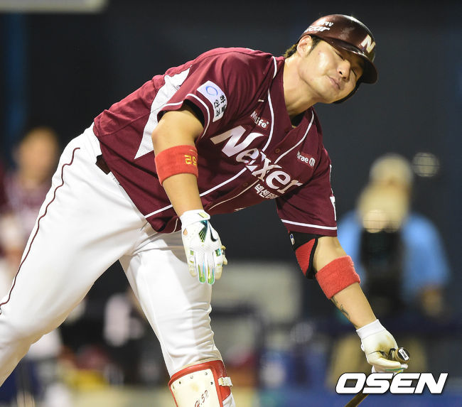 22일 오후 경남 창원 마산구장에서 열린 '2014 한국야쿠르트 세븐 프로야구' NC 다이노스와 넥센 히어로즈의 경기 9회초 1사 3루 박병호가 헛스윙 삼진을 당하고 있다.