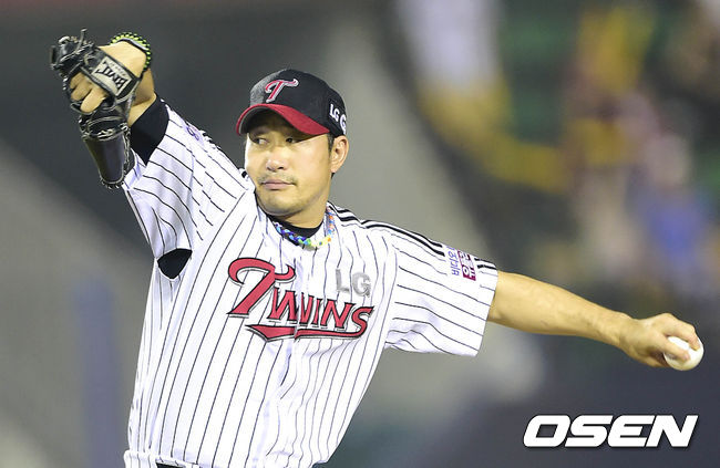 22일 오후 서울 잠실야구장에서 열린 '2014 한국야쿠르트 세븐 프로야구' LG트윈스와 KIA 타이거즈의 경기, 9회초 LG 마무리 투수 봉중근이 힘차게 공을 던지고 있다.