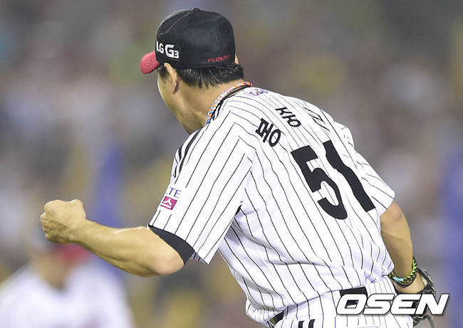 9회말 LG 봉중근이 세이브를 달성하고 주먹을 불끈 쥐고 있다./greenfield@osen.co.kr