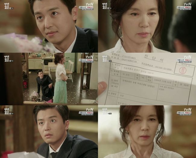 22일 오후 방송된 tvN 드라마 '연애말고 결혼'에서는 소녀(임예진 분)가 유방암에 걸렸다는 사실을 알게 되는 기태(연우진 분)의 모습이 전파를 탔다.