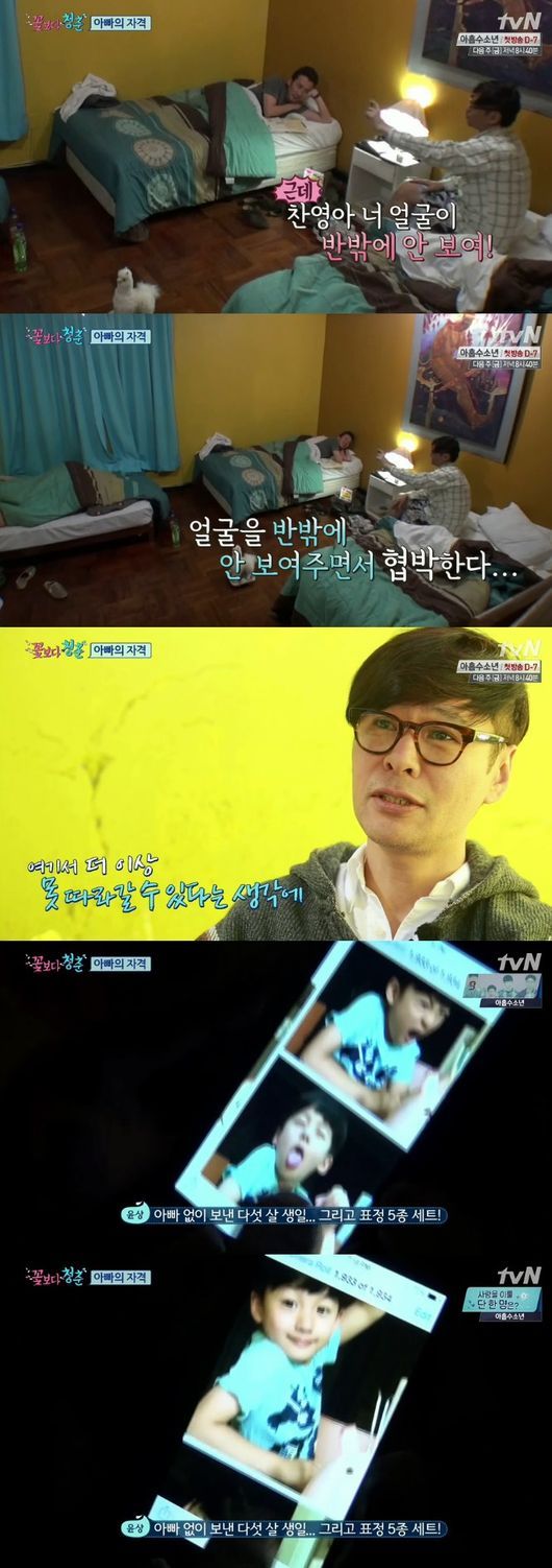 윤상은 22일 방송된 tvN 예능프로그램 ‘꽃보다 청춘’ 4회에서 여행 중 생일을 맞은 둘째 아들 준영 군과 통화를 했다. 그는 아들과 통화를 하는 와중에 뽀뽀를 하며 사랑을 가득 표현했다.