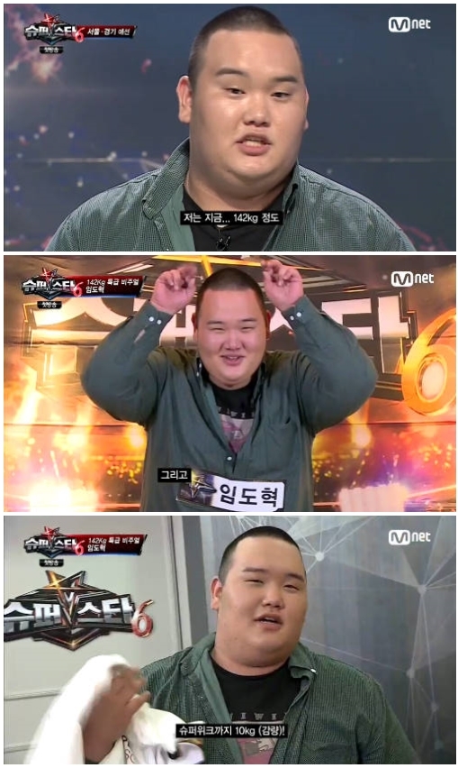 첫 번째 지원자는 몸무게 142kg의 임도혁으로, 23세라는 '반전'으로 심사위원들을 깜짝 놀라게 했다. 임도혁은 "태어날 때부터 우량아로, 덩치 때문에 인터넷 쇼핑몰에서 옷을 사야한다"면서도 "뚱뚱하지만 친근감 있다. 애교도 좀 있다"고 자신감을 드러냈다. 하루에 여섯끼를 먹었던 적도 있다는 그는 이제 1인1식을 한다고 했지만, 피자 한 판을 눈깜짝할 사이에 먹어 눈길을 끌었다.