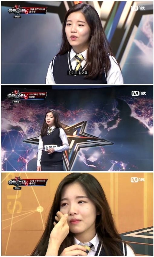 부천에서 온 송유빈은 예쁜 외모로 초반부터 스태프들의 주목을 받았다. 그의 등장에 심사위원들은 "남자친구가 있냐"는 질문을 쏟아냈다. 고2때부터 학원을 다니며 본격적으로 노래를 배웠다는 송유빈은 건강 문제로 잠시 쉬었다고 말했다.