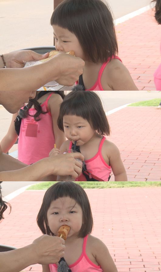 촬영 당시 다윤이는 아빠가 소윤, 다윤 자매를 위해 준비한 빵과 음료수 뿐만 아니라, 휴게소에서 산 핫바까지 한입에 삼키며 새로운 먹방 스타의 탄생을 알렸다.