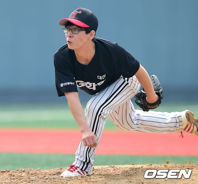 23일 전라북도 군산시 사정동 월명야구장에서 열린 제1회 KBO총재배 시도대항 전국 직장인 야구대회 4강전 전북 세아베스틸과 대전 LG 화학의 경기, LG 화학 선발 배효진이 힘차게 공을 뿌리고 있다.