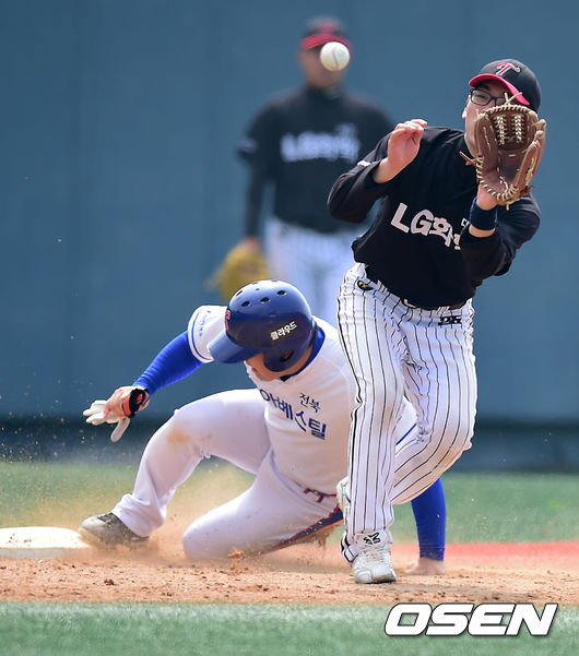 23일 전라북도 군산시 사정동 월명야구장에서 열린 제1회 KBO총재배 시도대항 전국 직장인 야구대회 4강전 전북 세아베스틸과 대전 LG 화학의 경기, 3회초 2사 주자 2루 세아베스틸 유민수 타석에서 2루 주자 조광현이 3루 도루에 성공하고 있다.