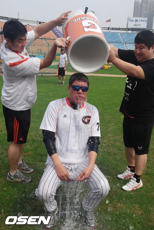 먼저 얼음으로 심장부근을 마사지한 김 감독은 짧고 굵게 한 통의 얼음물을 맞았다. 이후 김 감독은 "내가 투수 출신이니 선동렬 감독과 양상문 감독, 그리고 나와 함께 야구했던 염경엽 감독이 다음 순서"라고 지목했다.