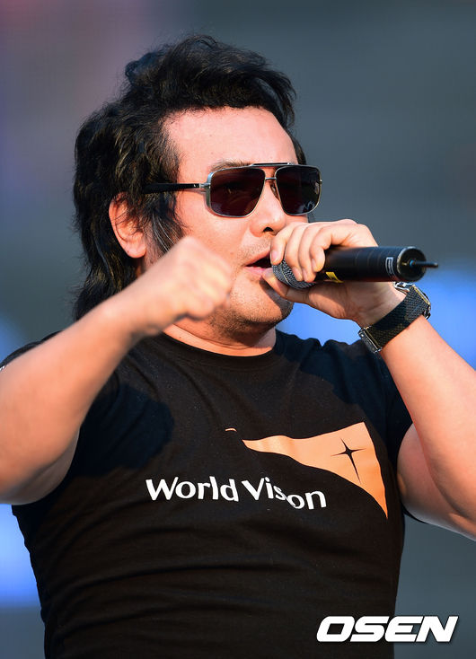 23일 오후 서울 상암동 서울월드컵경기장에서 열린 '월드비전 2014 기아체험·나눔콘서트'에서 홍보대사 김보성이 참가자들을 격려하고 있다.