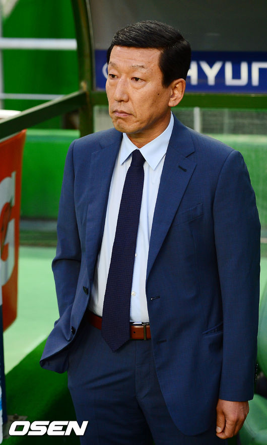23일 오후 전주월드컵경기장에서 열린 전북 현대와 FC 서울의 '현대오일뱅크 K리그 클래식 2014' 22라운드 경기, 전북 최강희 감독이 그라운드를 바라보고 있다.