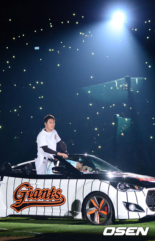 23일 오후 부산 사직구장에서 열린 '2014 한국야쿠르트 세븐 프로야구' 롯데 자이언츠와 LG 트윈스의 경기 종료후 조성환이 은퇴식에서 카퍼레이드를 하고 있다.